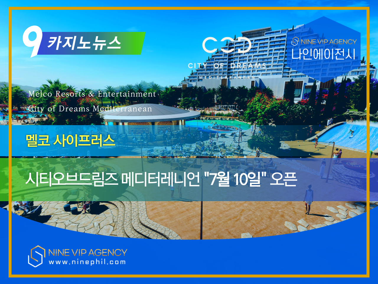 멜코 리조트 엔터테인먼트(Melco Resorts & Entertainment)는 오는 2023년 7월 10일 월요일에 5억 5천만 유로 규모의 키프로스 통합 리조트인 "시티오브드림즈 메디테레니언(City of Dreams Mediterranean)"을 개장한다고 발표했습니다.