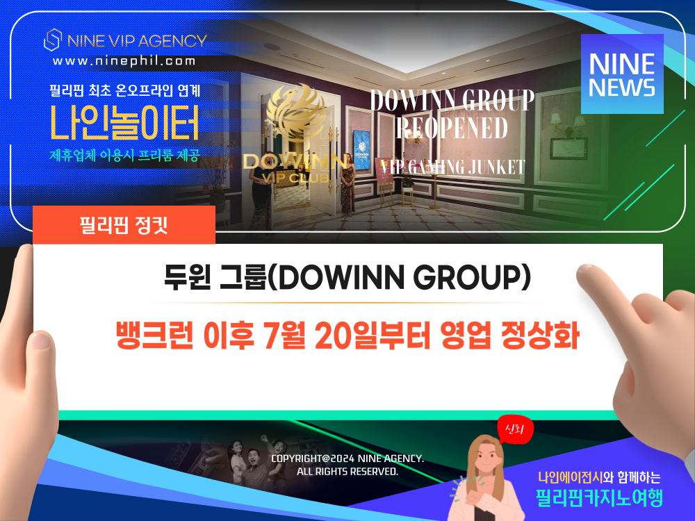 필리핀 정킷 두윈 그룹(DOWINN GROUP)은 뱅크런 사태 이후 지난 2024년 7월 19일 재오픈 준비를 마치고 7월 20일부터 정상영업을 재개했습니다.