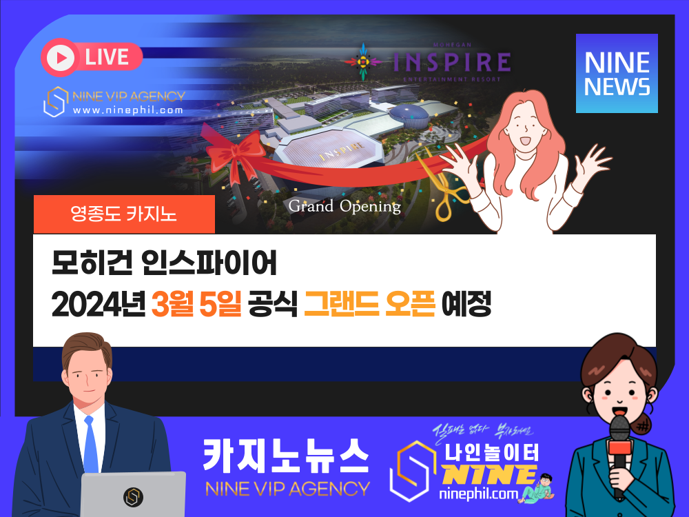 소프트 오프닝 이후 4개월, 카지노 운영을 시작한 지 한 달 만에 한국의 모히건 인스파이어 엔터테인먼트 리조트(Mohegan Inspire Entertainment Resort)는 오는 2024년 3월 5일 공식 그랜드 오프닝을 개최할 예정이며, 그래미상을 수상한 밴드 '마룬5(Maroon5)'가 인스파이어 아레나(INSPIRE Arena)에서 일주일간 축제의 헤드라인을 장식할 예정입니다.