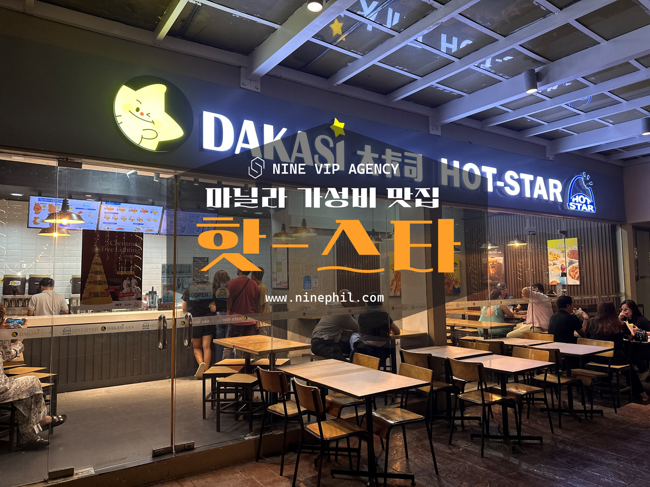 핫스타 1992년 대만에서 시작한 브랜드로 엄청난 사이즈의 프라이 치킨으로 유명한 곳 이며 2014년 필리핀에 진출 하여 필리핀 여러 지역에 매장을 운영 하고 있습니다. 같은 오너분께서 한 가계에서 같이 운영하는 다카시 버블티 전문점도 함께 운영 중 입니다. 예전에는 99페소 프로모션을 진행한 바 있어 현지인과 교민들에게 잘 알려진 맛집 입니다.